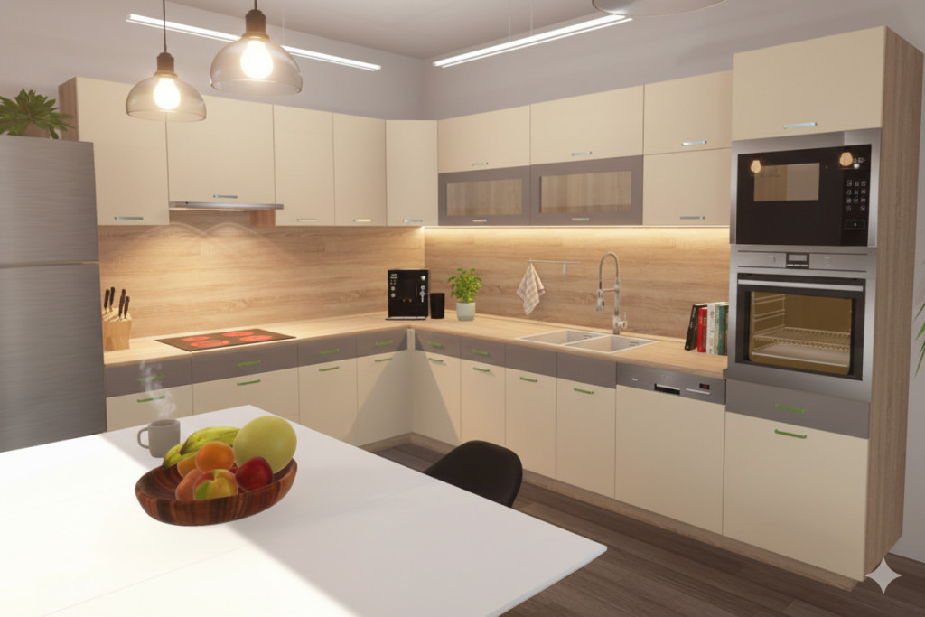 Méretéhez képest kedvező árát annak köszönheti hogy be tudtunk építeni egy 200cm konyhablokkot .